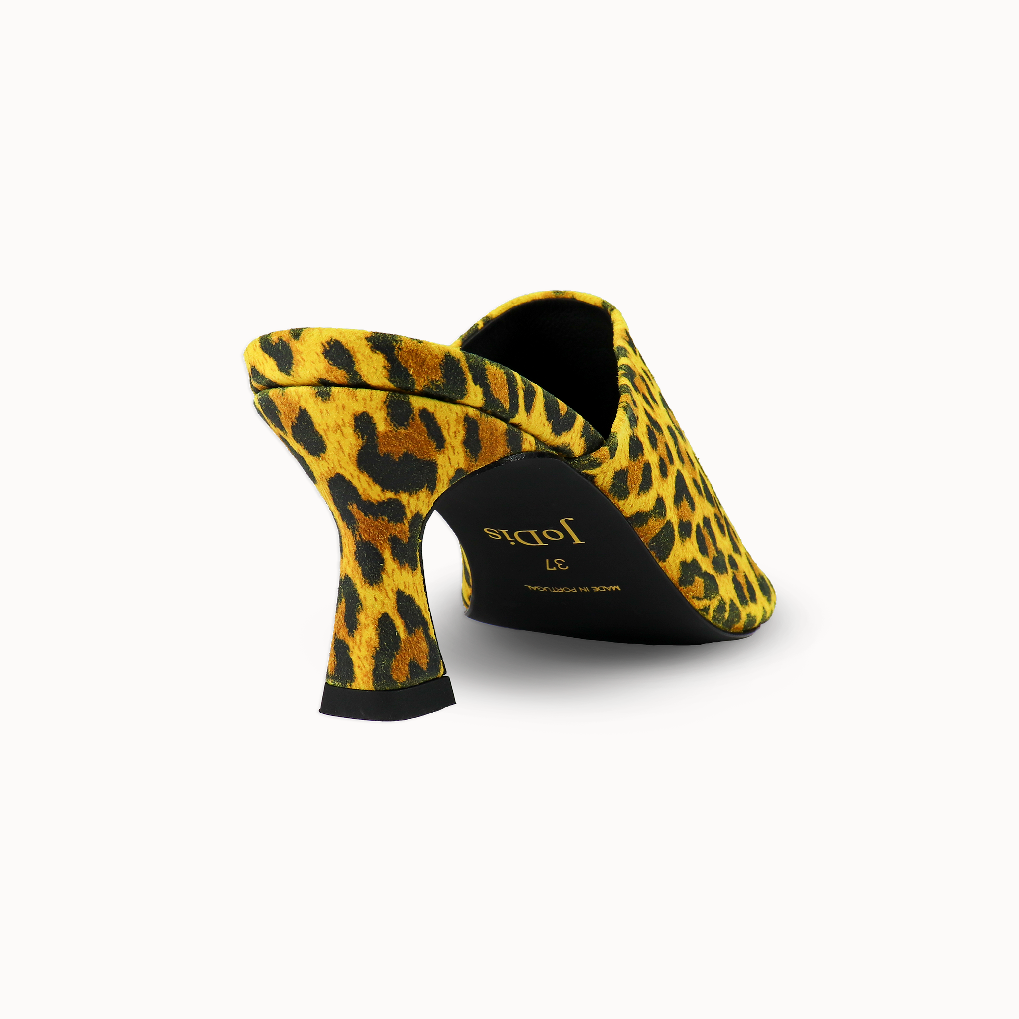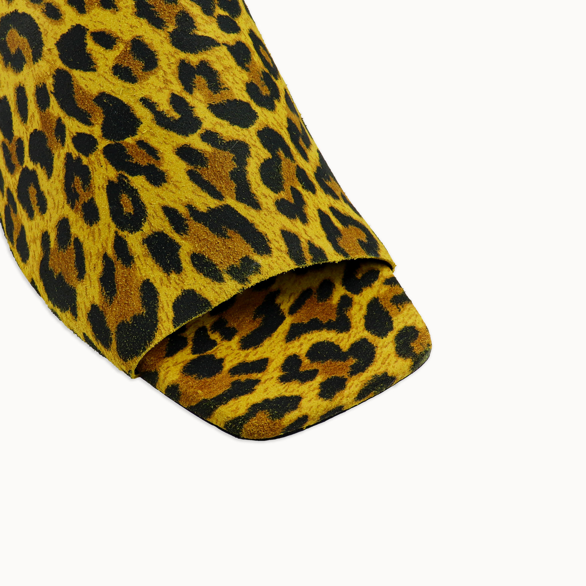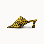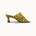 Mød Dalia i leopard suede, hvor klassisk elegance møder vildt, grafisk mønster. Den velkendte mule-form er opdateret med det luksuriøse og teksturerede leopardmønstrede suede, som giver et unikt, fashion-forward look. Med sin firkantede tå og 5 cm høje, skulpturelle hæl får Dalia stadig den moderne, stilrene silhuet, som gør den ideel til både hverdagsbrug og festlige lejligheder.