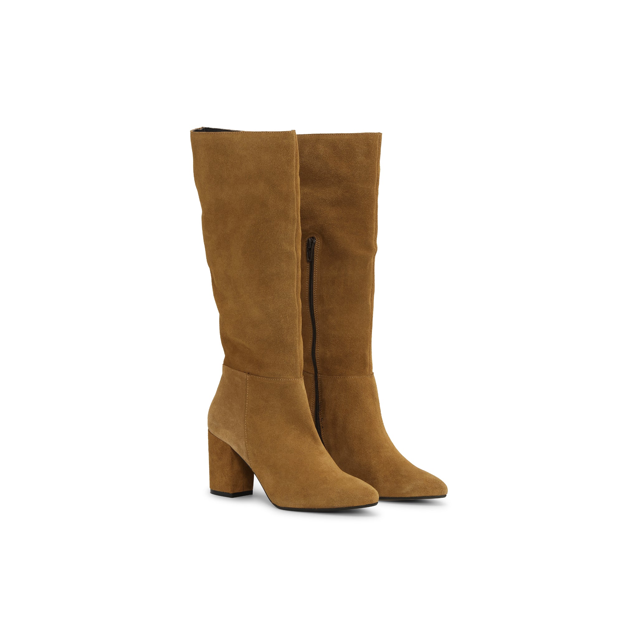 Timeless elegance meets modern edge. Derma is the boot you wear to feel chic from morning to night. Made from soft cognac suede leather that elegantly hugs the ankle, and designed with a round toe that gives a feminine and timeless expression. The 7 cm high heel gives you the perfect lift, without compromising on comfort.